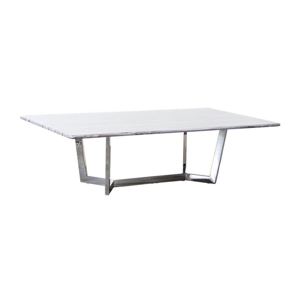 Modern rectangular coffee table with grey marble top on stainless steel frame. MATERIAL: Marble top, Stainless steel frame COLOR: Grey Marble SIZE: L125 x W70 x H36 cm