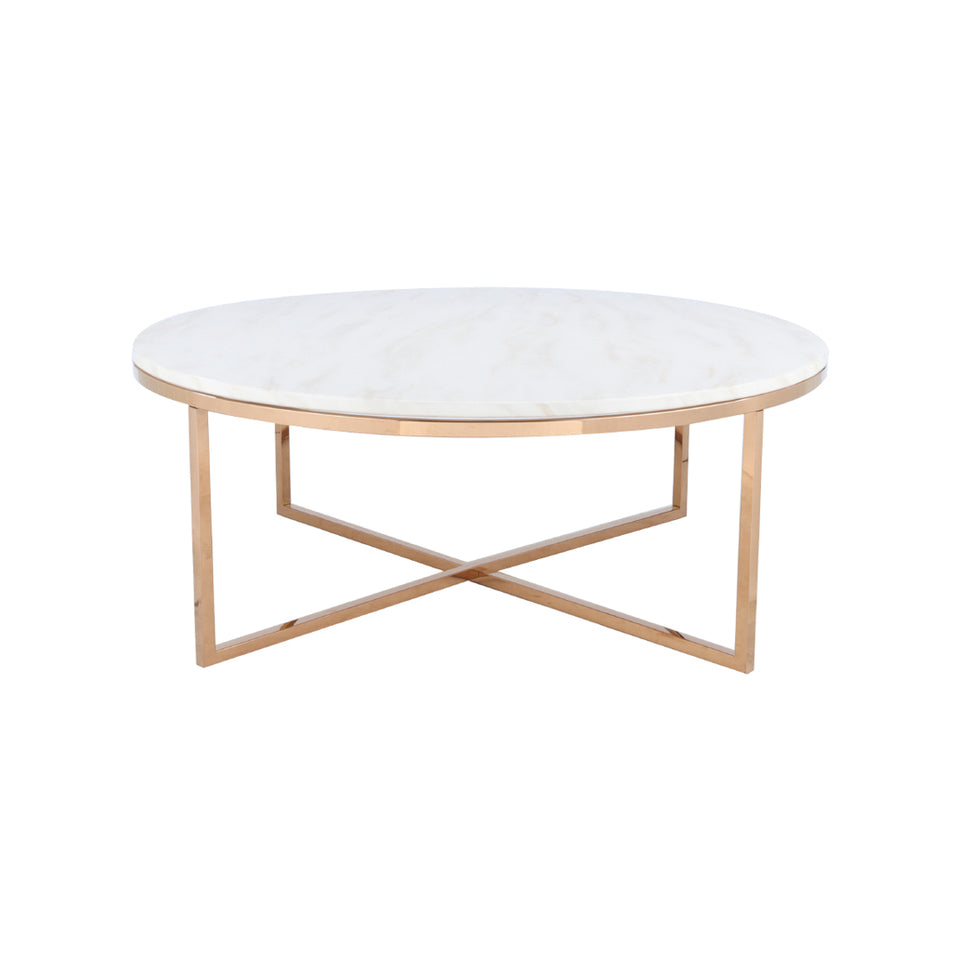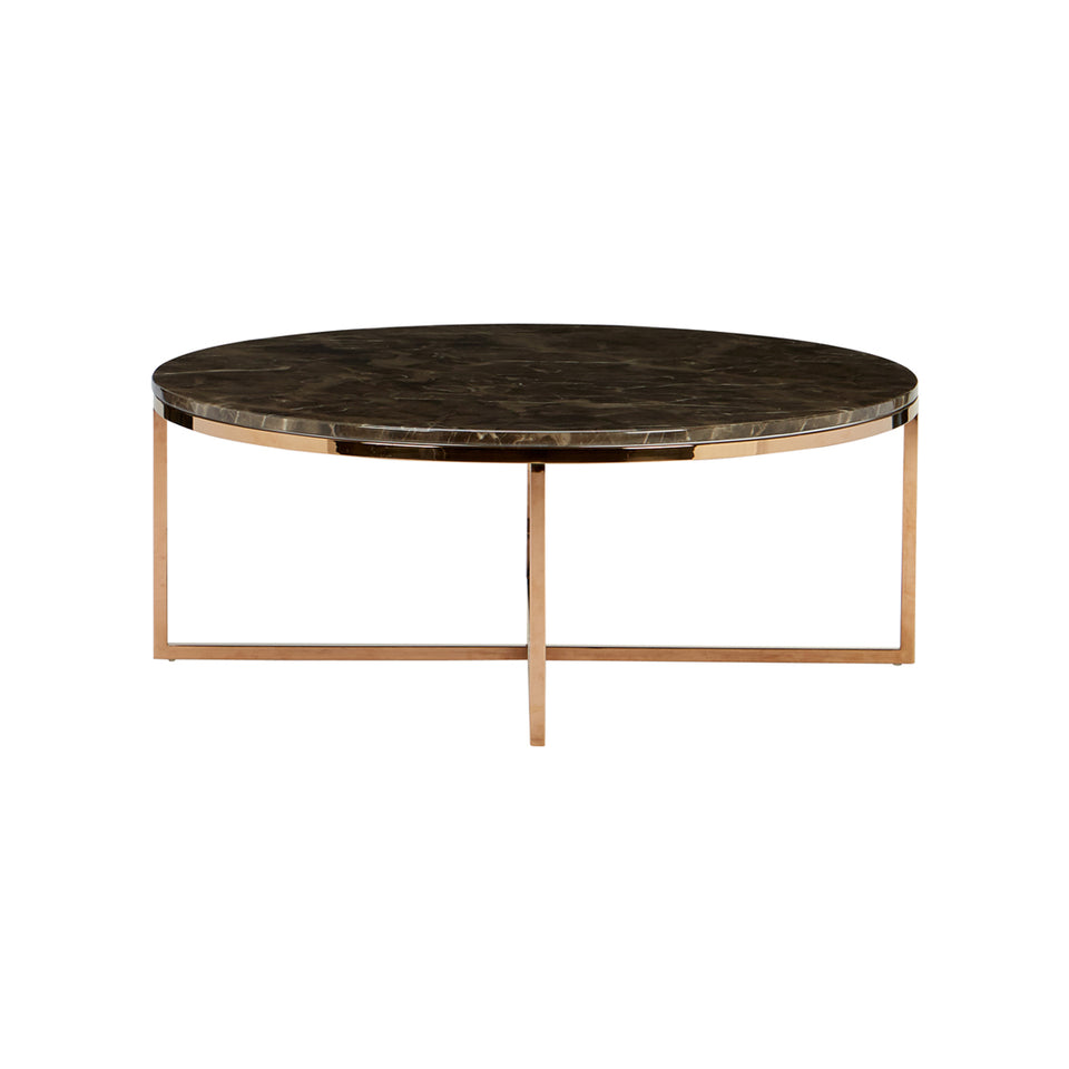 Round marble coffee table on golden steel frame. COLOR: Brown Marble SIZE: 100 x 100 x 38 cm * Also available in White Marble