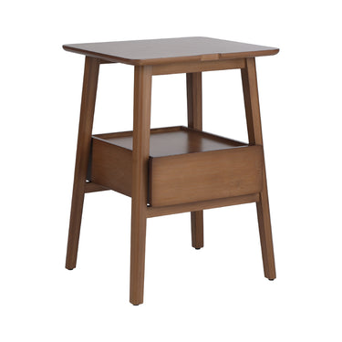A mid-century side table made of bamboo with one drawer. Max load 15kg.