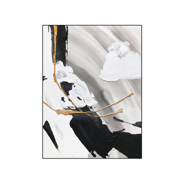 Oil painting on canvas with black wood frame.