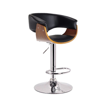 Bar stool. Bentwood with PVC seat, back and armrest. Chrome frame with pneumatic gas lift.
