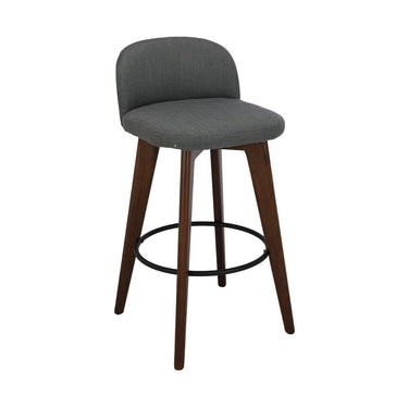 Contemporary low back fabric barstool on solid rubberwood legs.
