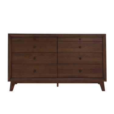 A Transitional Series highlighting Belgian oak veneer finish. This eight drawers dresser features full extension drawers and felt lined top drawers. Solid drawer box with English dovetail joint.