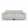 A modern fabric sofa with adjustable headrest. Leather upholstered outer panel with hidden storage stainless steel cupholder.