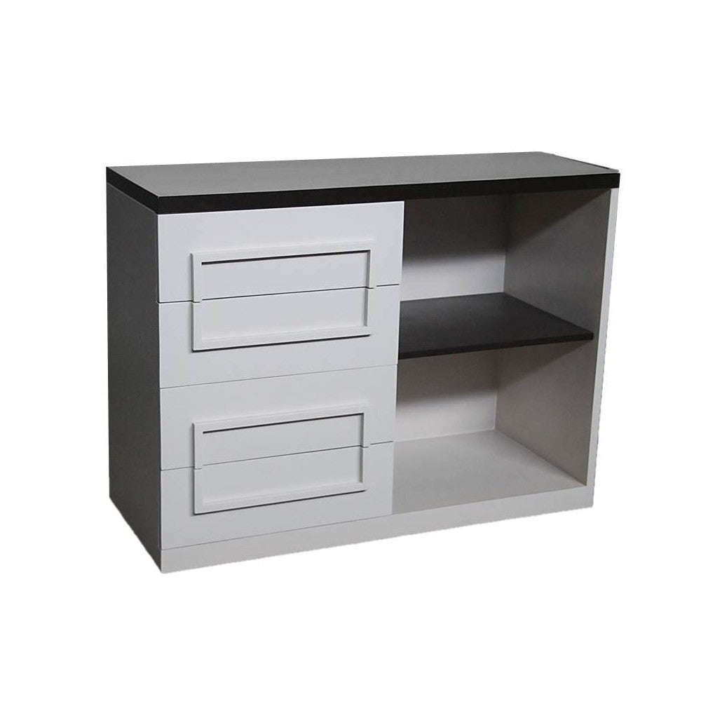 Dresser with 4 drawers. 2 open shelves, 2 tone finish.