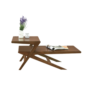 A modern solid wood coffee table featuring unique Z-shaped two-tier design.