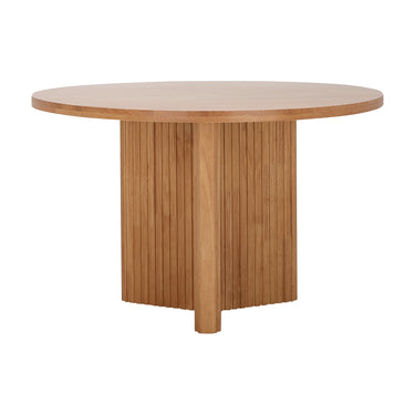 Modern round dining table with fluted design base made of solid rubberwood and can seat 6-8 people.