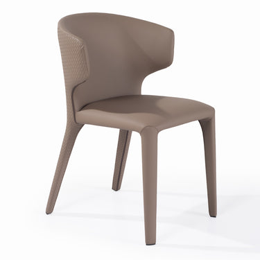 A modern winged-back dining chair features a luxe diamond-pattern weave backrest. PVC upholstered legs.
