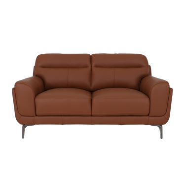 A contemporary plush sofa with double padded armrest on slim metal legs.