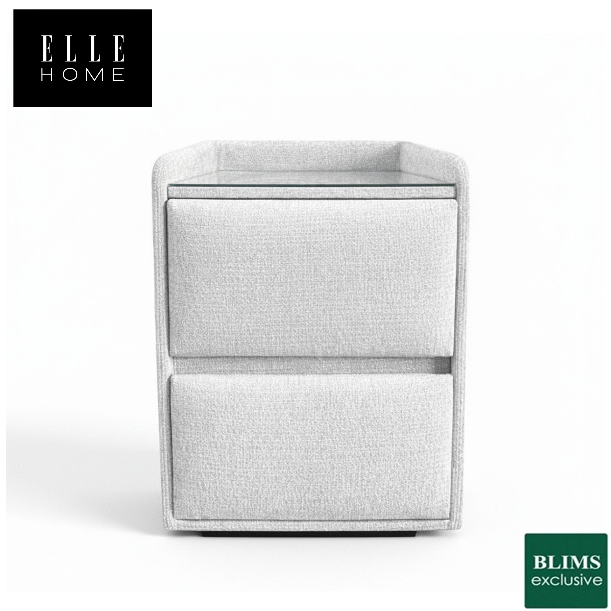 Its streamlined look is complemented by two handle-less drawers, offering ample storage for bedside essentials while maintaining a seamless aesthetic. The tempered glass top provides a durable and sophisticated surface for your morning coffee or evening read.