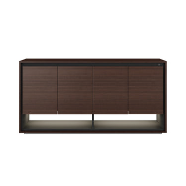 A sleek sideboard with a high gloss finish. 4 door cabinet buffet. Includes sleek accent lighting at the base.