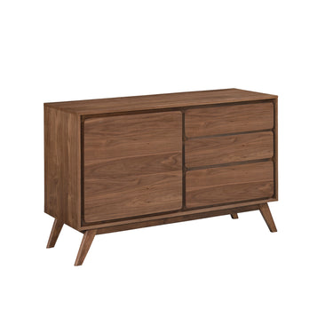 Compact wooden buffet with curved door panels. 1 cabinet, 3 drawer.