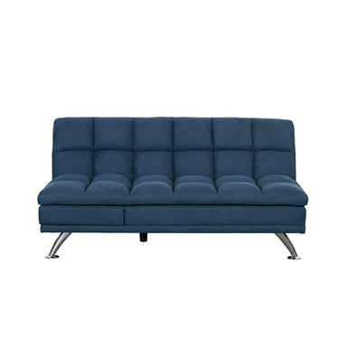 A contemporary plush multi-way sofabed, pillow top in fabric on metal legs.