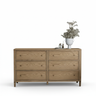 A modern contemporary bedroom series made of solid rubberwood featuring six drawers on a tapered wooden legs.