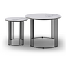 A round nest of tables with ceramic stone and black steel base.