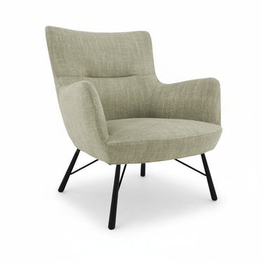 Accent Chair, Midcentury modern arm chair with X-shaped anthracite powder coated legs. Mid-back height with scooped arms.