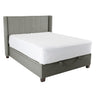This contemporary fabric-upholstered winged bed with a panelled headboard design and a lift-top storage base. The mattress weight is 35-75 kg.